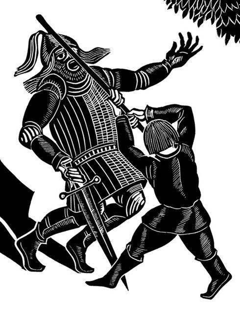 Рише облачился в доспехи, надел кольчугу и круглый шлем, повесил на пояс меч, взял щит с изображением льва, оседлал коня и тронулся в путь. Он быстро устремился к горной гряде: проехал рощу, миновал луга и вскоре оказался на усыпанном камнями склоне. Ничто не предвещало беды, как вдруг Рише услышал свит, словно рядом пролетело множество стрел. Он не успел ни прикрыться щитом, ни достать меч. Злобное крылатое существо – грифон, – напав сверху, сбросило его на землю. Чудовище интересовал не сам рыцарь, а его конь – прекрасный обед для трех детенышей, спрятавшихся в гнезде среди скал. Пока рыцарь поднимался, грифон успел растерзать коня когтями, вырвать его легкие и печень и с этой добычей отлететь в сторону. Рише выхватил меч, но было уже поздно.