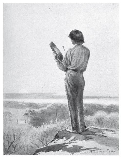 Под вечер он снял свой новый песенный барабан с колышка, тихо поднялся на вершину скалы и запел: