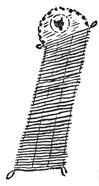 [Закрыть], аккуратно расколол шестифутовую жердь вдоль и долго трудился над половинкой, пока она не стала шириной в три дюйма, толщиной в середине – в один, а по краям совсем тонкой, с одной стороны закругленной и плоской – с другой. Потом он свернул ее в большой обруч, плоской стороной внутрь, подержал в горячей воде и на пару, чтобы придать дереву больше гибкости. Индеец продолжал стягивать обруч, пока не получил кольцо поперечником дюймов в пятнадцать, а тогда обрезал концы и плотно примотал их друг к другу ремешками, вырезанными из телячьей шкуры и вымоченными в воде, пока они не стали совсем мягкими.