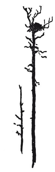К вечеру пятого дня путешественники увидели сухую сосну с орлиным гнездом на вершине у края длинного болота, почувствовали, что добрались до цели, и обрадовались.
