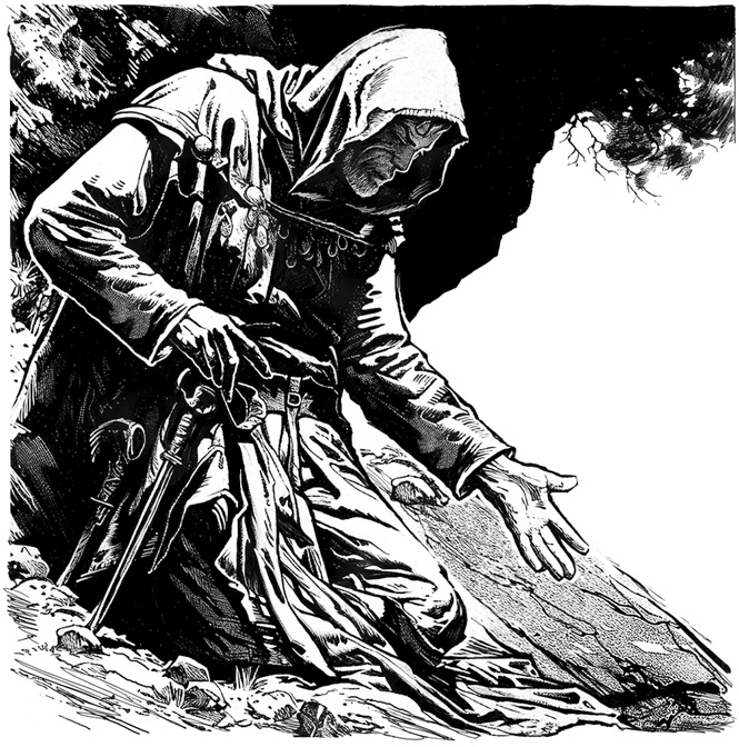 Я стоял в раздумье и упорно глядел в бездну, словно ожидая, что над ней вот-вот грозно встанет окровавленный труп графа… Мне казалось, что я его убийца, я все еще судорожно сжимал в руке его шпагу, шляпу и бумажник.
