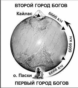 Думая на эту тему, я стал связывать существование двух Городов Богов с периодическими апокалипсисами на Земле, вызываемых, как мы уже отмечали в первом томе этой книги, смещением земной оси на 6666 км. Было вполне логично предположить, что Город Богов в районе острова Пасхи был первым и был построен тогда, когда эта точка была Северным полюсом. А через три апокалипсиса со смещением оси Земли три раза по 6666 км полюса поменялись, и Северным полюсом стала точка горы Кайлас. Именно тогда там был построен второй Город Богов. Для чего? На этот вопрос у меня не было ответа, но из подсознания опять вылезло слово «матрица».