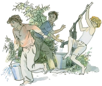 Никто со стороны и не подумал бы, что это разговаривают враги, а не два теплых друга. И поэтому Ольга, державшая в руках кувшин, спросила молочницу, кто этот мальчишка, который совещается о чем-то с хулиганом Квакиным.
