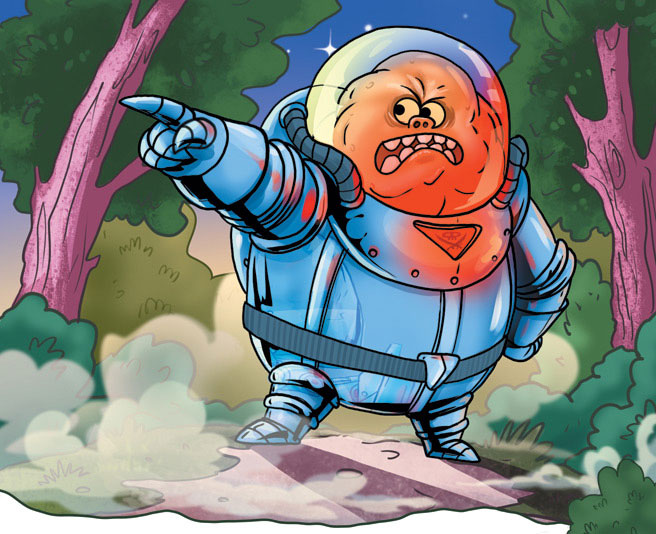 На трап ступил некто невысокий и коренастый, в серебристом скафандре. На руках у него были перчатки того же цвета с острыми когтями, а голову закрывал большой прозрачный шлем, похожий на аквариум.