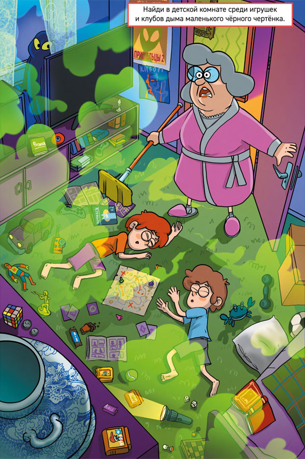 – И где же ваш чертёнок? – крикнула бабушка, врываясь в комнату. – Вот я его сейчас шваброй огрею!