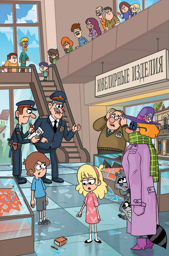 Ребята, решив не спорить с полицией, поспешно ушли. Покачивающаяся дамочка, состоящая из трёх енотов, заковыляла за ними следом.
