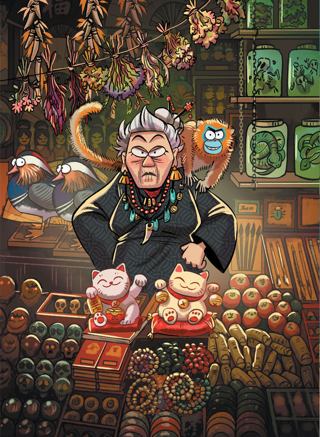 – Что угодно господину? – без улыбки спросила хозяйка лавки на ломаном английском. – В оккультном магазинчике бабушки Сяомин найдётся всё необходимое для приворотов, отворотов, проклятий и изгнания злых духов.