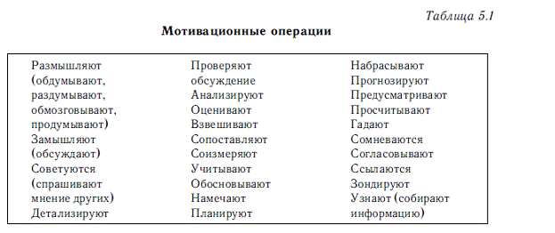 Безусловно, первопричиной деятельности, поступков являются потребности (правда, люди не всегда это понимают). Настораживает в приведенных выше высказываниях другое: придание потребности определяющей причины активности человека и отрицание роли мышления как движущей силы поведения и деятельности, сведение роли мышления только к осознанию потребности. Ведь при выборе вариантов удовлетворения потребности человек осуществляет подчас сложную мыслительную деятельность (табл. 5.1), которая по существу и определяет, будет удовлетворяться потребность или нет, совершит человек поступок или откажется. Поэтому переоценивать роль потребности в инициации активности человека нет оснований. Отдавая дань роли потребности в придании энергии мотиву, в осознании нужды, все же надо видеть ограниченную ее роль в направлении энергии по определенному руслу. Иначе человек просто оглупляется. Как пишет К. Роджерс (1984), даже самые первичные, исходные потребности и стремления могут действовать у человека лишь при том условии, если они поддержаны соответствующими нормативами.