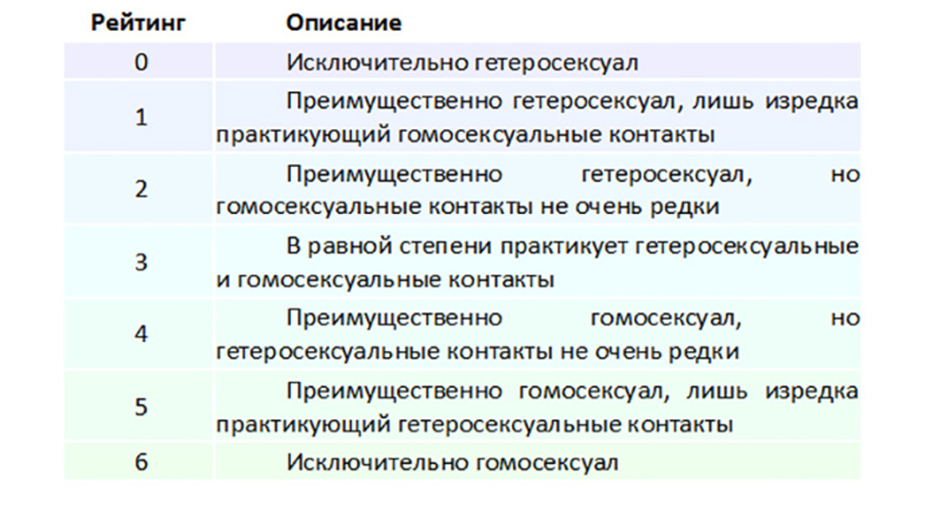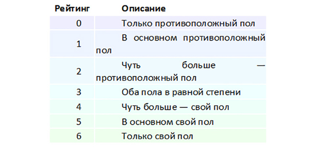 Таблица 2. Разнообразие сексуальных ориентаций по А. Кинзи