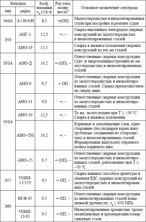 Характеристики наиболее распространенных электродов для сварки углеродистых и низколегированных сталей