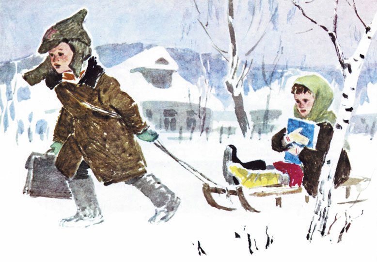 – Много лет назад в этом же классе сидели мальчик и девочка. Сидели так же, как сейчас сидим мы. Мальчика звали Вовой, а девочку – Аней. Аня росла болезненным ребёнком, а Вова рос сильным и здоровым мальчуганом. Аня часто хворала, и Вове приходилось помогать ей учить уроки. Однажды Аня поранила гвоздём ногу. Да так поранила, что не могла приходить в школу: ни башмак нельзя надеть, ни валенок. А шла уже вторая четверть. И как-то Вова пришёл к Ане и сказал: «Аня, я тебя буду возить в школу на саночках». Аня обрадовалась, но запротивилась: «Что ты, что ты, Вова! Это будет очень смешно! Над нами будет хохотать вся школа…» Но настойчивый Вова сказал: «Ну и пусть хохочут!» С этого дня Вова ежедневно привозил и отвозил на саночках Аню. Сначала ребята смеялись над ним, а потом сами стали помогать. К весне Аня поправилась и смогла вместе со всеми ребятами перейти в следующий класс. На этом я могу закончить рассказ, если тебе не захочется узнать, кем стали Вова и Аня.