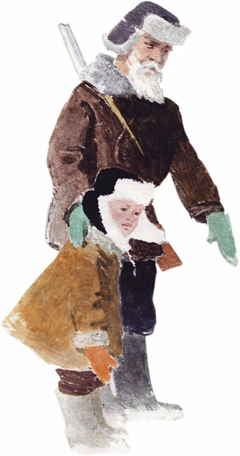 Прошла неделя, а может быть, и две. Опять старого да малого послали в лес. Зайца нашпиговать решили.