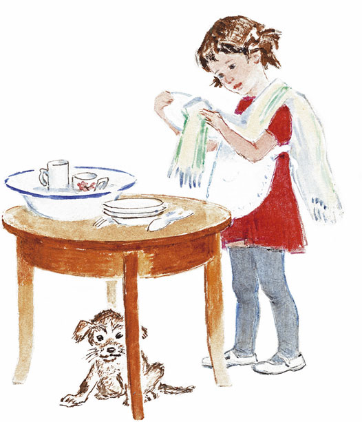 А когда Маша чисто-начисто вымыла посуду да сухо-насухо вытерла её, тогда не только мама, но и отец удивился. Удивился и при всех за столом сказал: