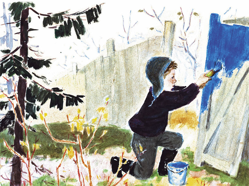 Отправились дед с внуком по первому снегу на охоту. Опять пошли через садовый питомник. Глядит дед – и глазам не верит. У чужой калитки не только щеколда на хорошие шурупы привёрнута, не только её петли белым салом смазаны, но и краска на калитке – как небо в мае месяце.