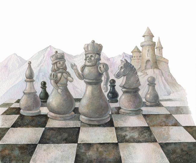 Так говори́л при о́бщем молча́нии, ничего́ не преувели́чивая, не произнося́ ни еди́ного сло́ва непра́вды, всеми́рно изве́стный коро́ль, сто́я ря́дом со свое́й короле́вой в окруже́нии сви́ты на… ша́хматной доске́.