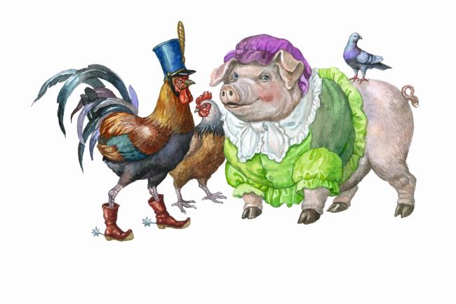 Петуха́ капра́лом назна́чили. Коро́ву ба́рыней назва́ли, свинью́ – суда́рыней, ба́рана – ро́тмистром…