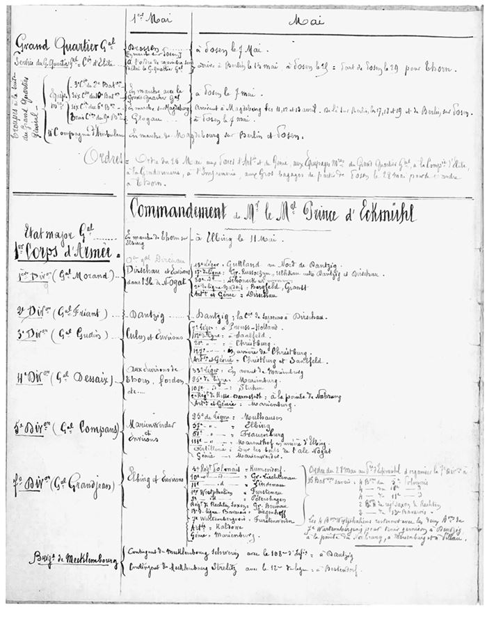 Страница из ранее неизвестного расписания Великой армии, выполненного архивистом и историком Л. Маргероном. В собрании Е. Понасенкова. Публикуется впервые.