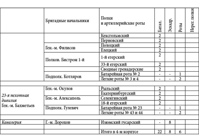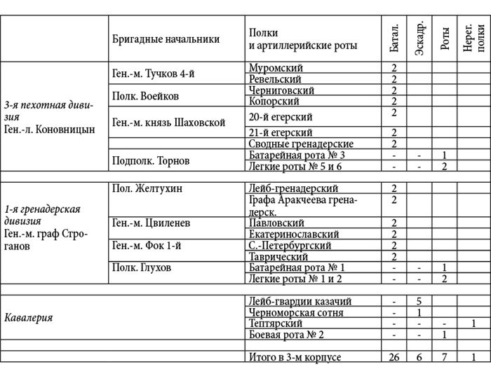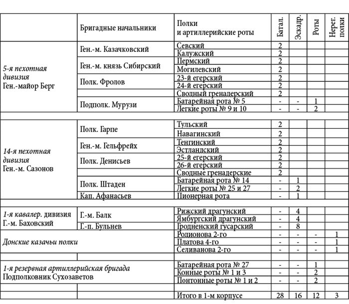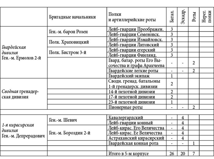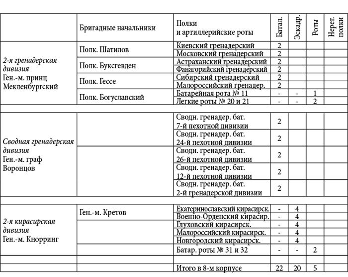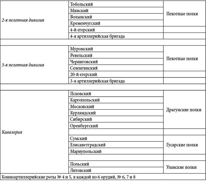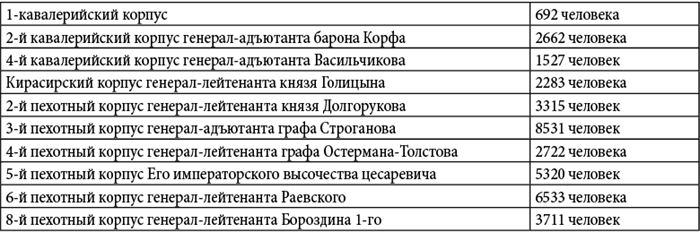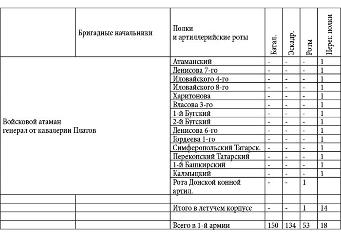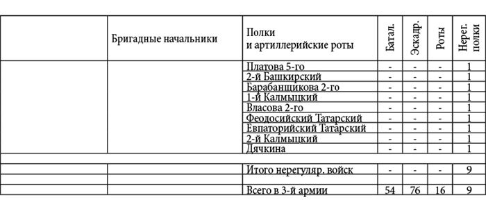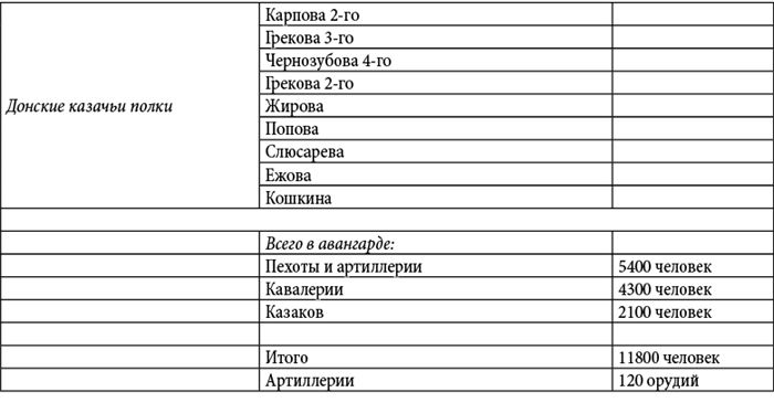 Пояснение. Данные росписи войск были извлечены Д.П. Бутурлиным из подлинных документов генерал-квартирмейстера К.Ф. Толя: и они живо свидетельствуют о практически полном уничтожении армии М.И. Кутузова в конце кампании 1812 года. Все имена и фамилии оставлены без изменений; даты также приводятся по старому стилю – как в оригинале.