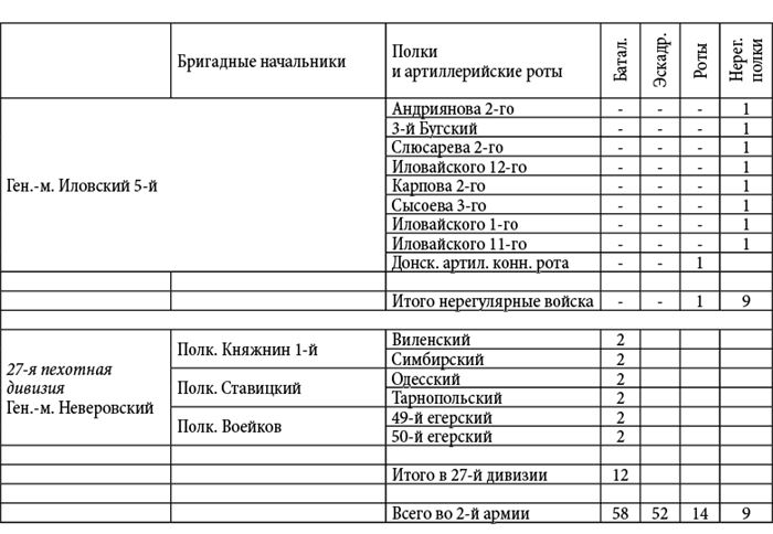 Расписание российской 2-й Западной армии при открытии военных действий
