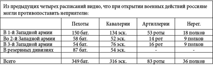 Расписание российской 1-й Западной армии ри открытии военных действий
