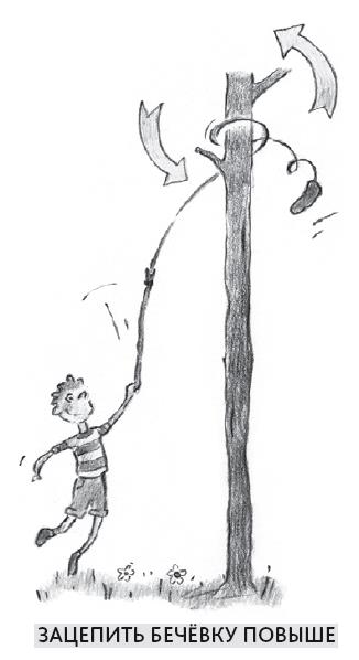 Выберите сушину, диаметр которой не превышает пятнадцати сантиметров. Ударьте по ней верёвкой с утяжелителем – так, чтобы она перекрутилась вокруг ствола, зацепилась за него. Чем толще ствол, тем выше нужно за него цепляться. Убедитесь, что бечёвка закрепилась, и принимайтесь раскачивать сушину.