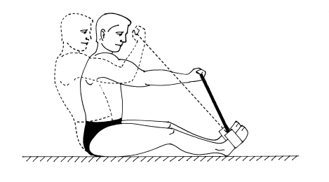УПРАЖНЕНИЕ 3. Чтобы удержать тело в положении сидя, нужно включить в работу мышцы спины, живота и бедер. Но если слегка видоизменить это упражнение, можно заставить также работать широчайшие мышцы спины. Для этого нужно опустить груз ниже уровня груди и тянуть на себя, сгибая локти.