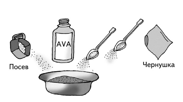 Подготовить емкость с почвой и семена, смешав их с песком и удобрением AVA, посеять их, как будто солите почву.