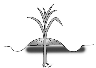 Перед высадкой рассады я рекомендую ножницами укоротить как верхнюю часть пера, так и корни. Такой подстриженный лук гораздо лучше приживается (рис. 81). Траншеи для порея – глубиной 25–30 см, расстояние между траншеями – 50–60 см. Разложить рассаду по стенке траншеи и присыпать почвой с гребня на противоположной стороне траншеи высотой примерно 5–6 см, только чтобы закрыть корни. В дальнейшем постепенно подсыпать почву с гребня, окучивая подрастающую рассаду (рис. 82). Окучить подросшие растения как можно выше, сгребая почву с поверхности грядки. Чем выше окучен порей, тем больше отбеленная часть (рис. 83). Со второй половины лета полив следует прекратить, но в дождливую погоду никаких тоннелей над ним ставить не надо, поскольку растение не образует луковицы.