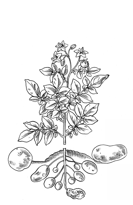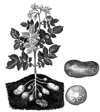 Картофель относится к пасленовым культурам. Его родина – Аргентина и Перу. На своей родине картофель был мало продуктивной культурой с мелкими клубнями, но зато он был очень вкусный из-за высокого содержания в нем крахмала (более 20 %) и белка (7 %). Этот картофель диплоидный, то есть содержит 24 хромосомы в молекуле ДНК, что делает его устойчивым к заболеваниям, кроме того, он – растение короткого светового дня. Затем картофель переселился на свою вторую родину, в Чили. Там он стал трехплоидным (в его наследственной молекуле содержится 48 хромосом) и высоко продуктивным, крупноплодным, но потерял при этом большую часть белка (его осталось всего 2 %). Соответственно, картофель стал менее вкусным и менее устойчивым к заболеваниям, к тому же превратился в растение длинного светового дня.