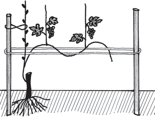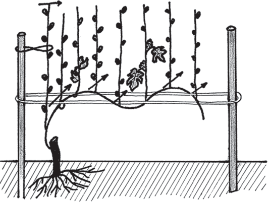 Рис. 8. Подвязка и пинцировка лозы второго года