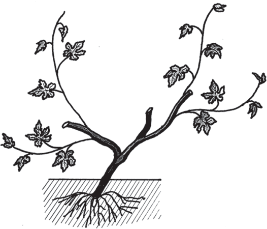 Рис. 18. Первая обрезка осенью на две почки