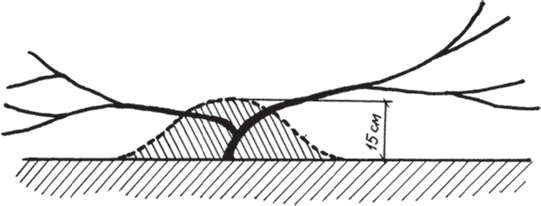 Рис. 33. Подсыпка почвы в основание куста перед укрытием его на зиму