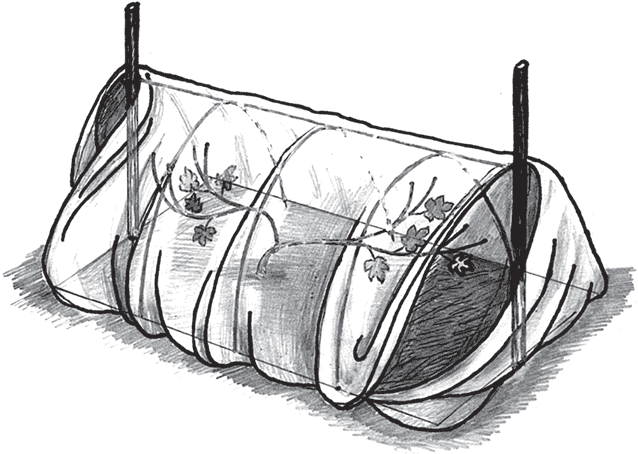 Рис. 34. Весеннее укрытие кустов винограда от заморозка лутрасилом