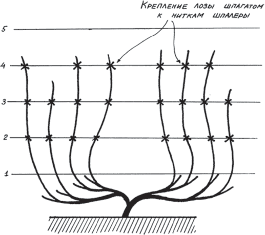 Рис. 35. Подвязка куста к шпалерам