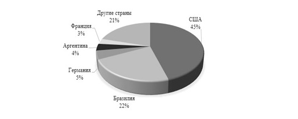 Структура производства биотоплива по основным странам представлена на рисунке ниже.