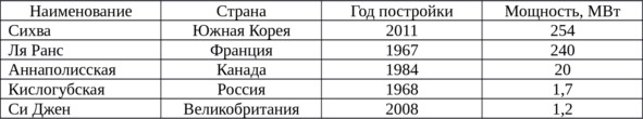 Таблица 1.2 – Приливные электростанции