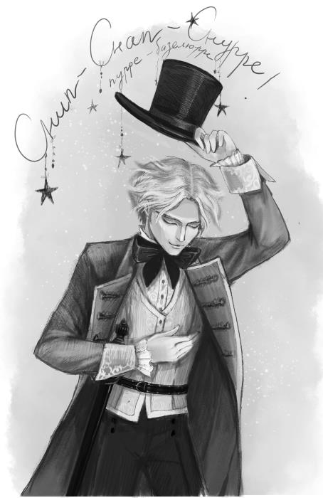 Человек в черном сюртуке, не теряя выражения холодной важности, подпрыгивает от неожиданности.