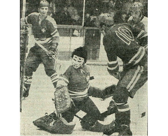 23.12.1971 год. Сборная Швейцарии-СКА (Ленинград). Ленинградец Юрий Глазов у ворот голкипера Жерара Риголе