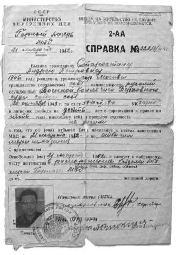 Справка Андрея Старостина об освобождении