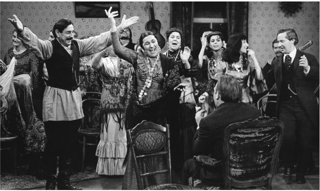 По каким-то только ей известным причинам она не так часто танцевала, даже когда ее просили. Но несколько раз я видел ее в танце. Это действительно было феерическое действие. И дело не во вращении юбки и забрасывания ее за плечи… Какая стать, походка, кастаньетные удары каблучков на паркете, пластика в движении рук. Поэзия цыганского танца. На вечере для «своих» в театре композитор Ян Френкель, поэт Константин Ваншенкин и, что самое важное, артисты театра рукоплескали Шуре. А когда на нашей свадьбе все умолили, упросили ее хоть чуть-чуть станцевать, она прошлась, действительно, – и показала настоящий классический выход. Ведь недаром ее приглашали в качестве балетмейстера ставить цыганские танцы. Например, в Вахтанговский театр, в спектакль «Живой труп».