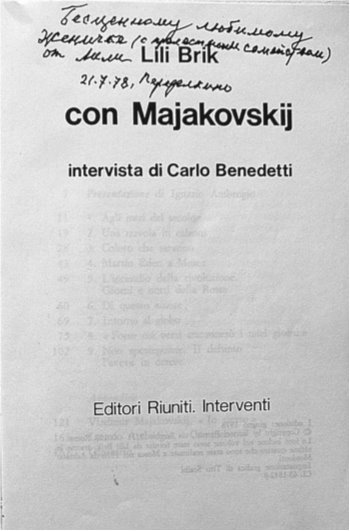 Изданные в Италии воспоминания Лили Брик с автографом Евгению Табачникову