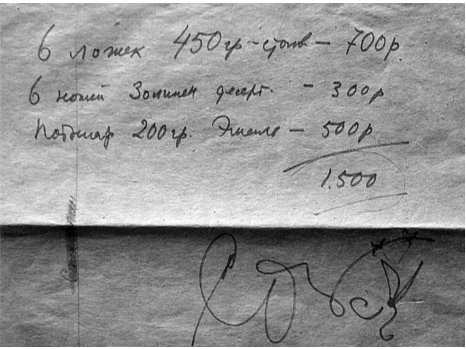 Автограф Сергея Параджанова, сделанный за обедом