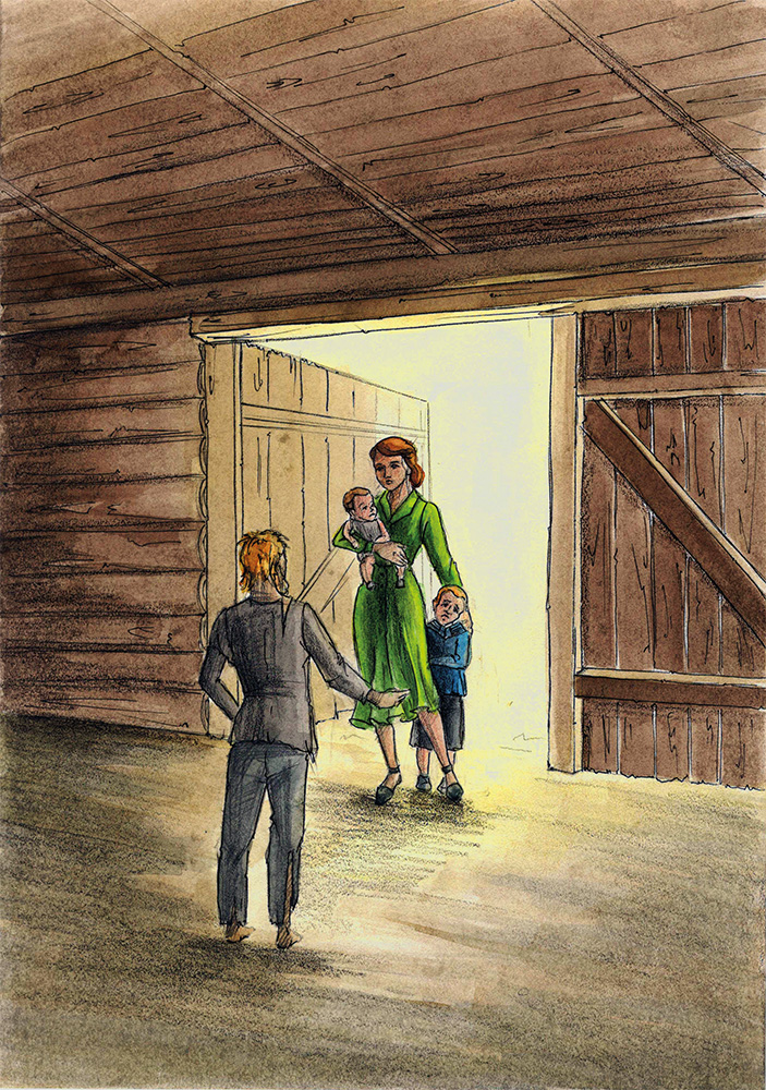 Наконец, дверь хаты распахнулась и на пороге показались мы. Мама одной рукой прижимала к груди конверт со Светой, а другой подталкивала впереди себя меня. Подойдя к хлеву, она приоткрыла дверь, протолкнула вперед меня и застыла в проеме со свертком на руках. «Вот и мы!» – торжественно произнесла она. Отец так описывает впечатление, испытанное им от встречи с нами.