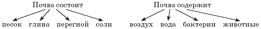 Результаты практических работ могут фиксироваться и в схеме. Примером может служить работа в 3 классе по изучению состава и свойств почвы. Перед началом работы ставится проблемный вопрос: «К живой или неживой природе можно отнести почву?».