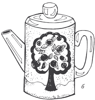 Рисунок 149. Чайник с яблоней: а) схема для вышивки гладью; б) общий вид