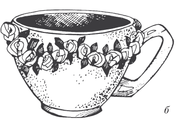 Рисунок 162. Чашка с гирляндой из роз: а) элемент для вышивки «Роза»; б) общий вид