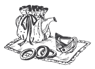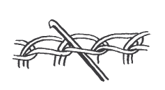 На крест она, как видите, не похожа, но техника ее выполнения во многом близка к кресту. Все ходы нити (один ход – расстояние между двумя вкалываниями иглы в ткань) в этом случае делятся на четные и нечетные. Нечетные ходы выполняются одинаковыми стежками швом «вперед иголку» в направлении слева направо. Четные же ходы нити в направлении справа налево делаются уже после того, как будут выполнены все нечетные ходы данного фрагмента вышивки. Обе стороны росписи поэтому выглядят идентично. Росписью очень удобно «обводить» контур вышивки. Применяется она и при оформлении вязаных многоцветных изделий, украшенных сюжетным рисунком.