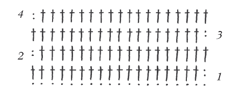 В каждом следующем ряду количество столбиков между цепочками будет увеличиваться на 2.