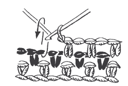 Выполняется столбиками и бугорками. Вязать столбики и бугорки между столбиками, обхватывая воздушные петли (рис. 50).