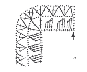 Для обвязывания углов изделий предлагаем несколько специальных схем (рис. 65).
